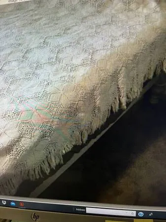 Beautiful, Intricate Designed Hand-Made Quilt or use as a Tablecloth also. It measures 9 x 7. In the pic it is laying on a Queen size bed. It also has some w 8 to it, right at 10 lbs. Sell for $65. First to see will buy. There are no stains on it... Call or text 423-838-2226.