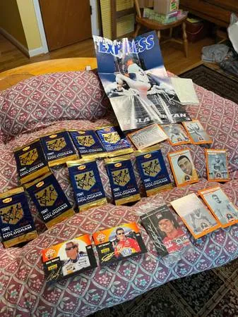 Nolan Ryan 1993 Poster, 10 Dennys Baseball Hologram Cards, 1996 unopened, Jeff Gordon and Rusty Wallace Upper Deck 1998 Cards, 10 Tn. Vols Vintage Cards, and Danny Sullivan, Emerson Fittipaldi Indy Cards. Take $25 for all, call or text 423-838-2226.