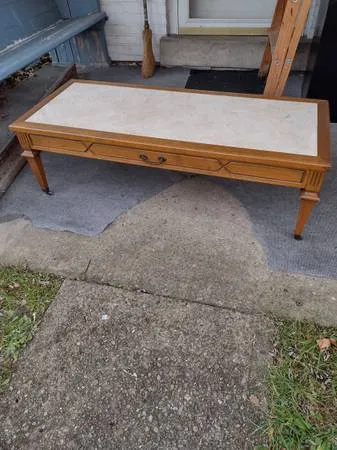 Vintage, classy Mersman marble top coffee table for sale. Measures 48 x 20 and 15 high. It has brass feet and wheels. Delivery is available. Call Mike Penn Hills 412-526-8360. If you reply by email and do not see my response, please check your spam folder.