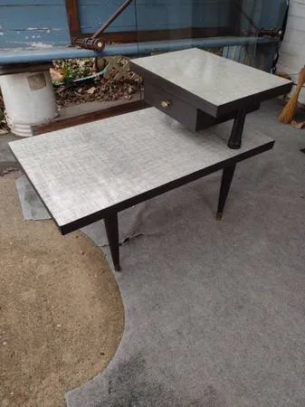 Art Deco 2-tier step end table for sale. Measures 19 wide, 32 deep and 22 high. Call Mike Penn Hills 412-526-8360. If you reply by email and do not see my response, please check your spam folder.