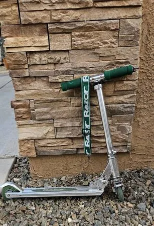 RAZOR KICKS SCOOTER 1990 SFOLDS FOR EASY STORAGE, WITH CARRYING STRAP. HAS A HANDLE EXTENSION ADJUSTMENT LEVER FOR TALLER H 8. phone CALLS//TEXT MESSAGES 505-573-4576, NO E-MAILS.