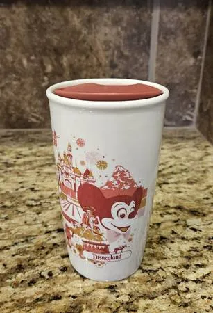DISNEYLAND STARBUCKS MICKEY MOUSE, 12 OUNCE, CERAMIC TUMBLER CUP WITH LID, NEW. phone CALLS/TEXT MESSAGES ONLY 505-573-4576, NO E-MAILS.