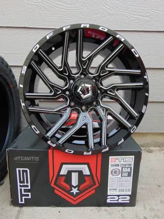 Price of $1,600 CASH is FIRM for 4 Brand New Rims in the box. Call Karl at 720-933-1476 for fastest response if you want to buy these 4 Brand New 22 X 10 Gloss Black with Milled TIS Offroad Rims. I also have several different tire options for these wheels price depends on size and brand. Wheel specs are posted in the pictures below.