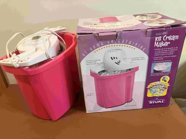 Rival ice cream freezer, 4 qt, rarely used. Electric. Lots of rock salt too. 4 soda glasses included.3 have never been used. $15 Landline: 907-345-1902.