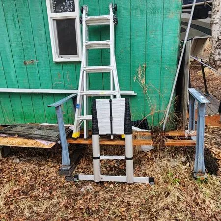 A little giant 22 folding adjustable ladder and a 12 telescoping ladder. Both for $200, please call 907-373-3182 for more info. Moving must sell. Land line so no texts can be sent to received.