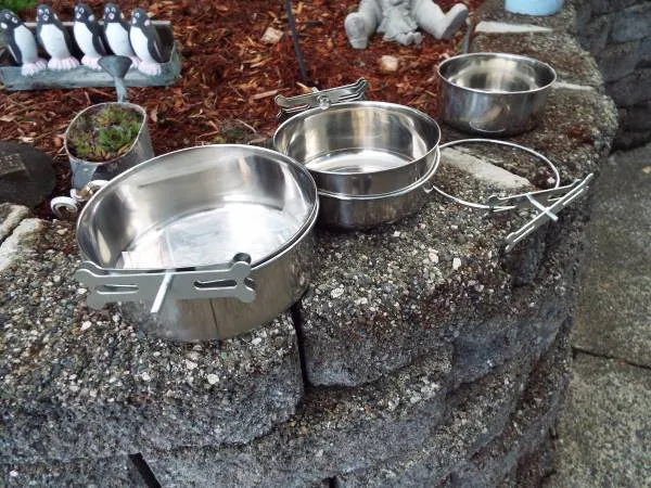 We have a 3 bowl set of pet bowls that bolt to the side to keep them from spilling, 3 different sizes 56 and 7 bowls all 3 for $20. 2 sets available. No text will be answered at this number and I will not call you from a text so either email thru Craigslist or I would rather if you are serious that you call Bill at 971-704-9136 Oregon phone number but we are local