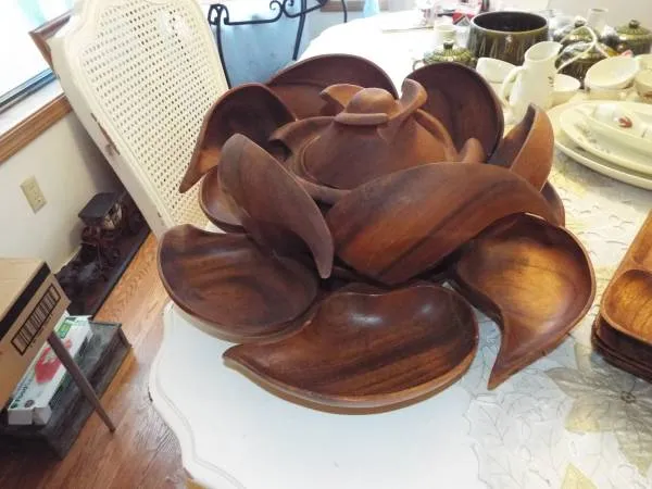 Awesome lot of MCM Monkey pod wood dinner or party server & dishes for sale. Lotus flower server measures 22 inches across and 10 inches tall. 10 Divided dinner trays measure 12 X 12 inches. 8 dinner plateswith scratches from usemeasure 10 X 10 inches. made in Philippines. No text will be answered at this number and I will not call you from a text so either email thru Craigslist or I would rather if you are serious that you call Bill at 971-704-9136 Oregon phone number but we are local...