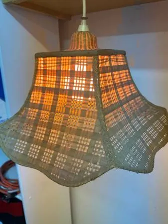 Fun! Vintage Wicker Shade Hanging Light W/New LED Bulb! Looks nice when on:10 inches Tall. 13 inches Wide across bottom opening. From non smoking home. Pick up Wandermere area. 40.00 Call or text 509-990-8129 Thanks!