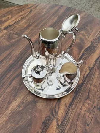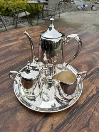 Must See:Vintage Collectible Cheshire 5 Piece Silver Plate Coffee/Tea Set:From Non Smoking Home. Really Pretty! Pick up Wandermere Area. 80.00 Call or text 509-990-8129 Thanks!