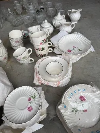 Make Reasonable Offer :Large Collection of pretty Rose print dishes! Several different sizes and uses:includes a lot of glassware!! See pics:Been in storage. From non smoking home. Pick up Wandermere Area. Call or text 509-990-8129 Thanks: