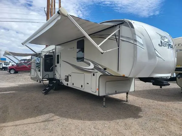 Ram Motors RV & Truck Center Ask for: Sales 505-892-3600 8100 Jacs Lane albuquerque, NM 87113 Enter this to see more images plus all other inventory we have available: https://lyv.cc/YZ 5 Y 6 2020 Jayco Eagle 336 FBOK Price: $44,998.00 Basic Information: Year: 2020 Make: Jayco Model: EAGLE M-336 - Stock Number: 16154 VIN: 1 UJCJ 0 BV 2 L 1 WL 0104 Condition: Used Type: Fifth Wheel LengthFeet: 0 Exterior: Exterior Color: BROWN Interior: Color Scheme: BROWN Description: Jaycos famous Eagle brand fifth wheels boast modern styling, innovative design, best-in-class construction and exclusive features that are sure to make every destination more enjoyable than the last. 2020 Jayco Eagle 336 FBOK A history of innovation and quality Jayco’s famous Eagle brand fifth wheels boast modern styling, innovative design, best-in-class construction and exclusive features that are sure to make every destination more enjoyable than the last. Features may include: Interior Solid hardwood slide fascia Handcrafted and glazed doors, drawers and trim Heavy-duty, 75 lb., full extension, steel ball-bearing drawer guides 5/8 in. tongue and groove joined plywood floor decking Shaw® residential carpeting with R 2 X® stain guardMade in U.S.A. Shaw® residential carpet pad with R-value and sound dampeningMade in U.S.A. Shaw® Wood Plank vinyl flooringMade in U.S.A., standard minimal carpeting LED interior lighting throughout LED dimmer switches in main room and dining area Central command center with built-in tank monitoring Tri-fold hide-a-bed sofa with residential sleep surfaceselect models Swivel glider reclinersselect models Stainless steel kitchen sink Brushed nickel kitchen faucet with pullout sprayer Dual USB charging portskitchen and bedroom Bluetooth speaker prep 12 V charging station Extra 110 V power outlets in kitchen and slide rooms Bathroom skylight LED backlit medicine cabinet with custom framed mirrorindustry exclusive Bathroom st 1 and glass tile backsplash Blue LED nightlightsbathrooms and bunkrooms Porcelain foot flush toilet Residential quilted bedspread and pillows Gas-strutted under-bed storage Smart LED Reading Lightswith blue nightlight mode CPAP prepped bedroom Carbon monoxide and LP detector Exterior StrongholdVBL™ aluminum framed and vacuum bond laminated gel-coated fiberglass exterior wallsincluding rear wall and slide room end walls Magnum Truss™ Roof Systemstrongest tested roof in the industrywith 1 piece, seamless DiFlex II material Climate Shield™ 0-degree tested weather protection Fully enclosed and heated underbellyducted 35,000 BTU output furnace Double layer fiberglass batt insulation in ceiling and floor Double sided radiant barrier insulationroof, floor, cap, and slide room floors PEX plumbing HELIX Cooling System™industry exclusive Exterior-mounted 15,000 BTU Whisper Quiet A/C unit Jayco exclusive insulated dual duct design Directional and closeable A/C vents Larger return air vents with user accessible filters JaySMART™Safety Markers And Reverse TravelLED Lightingpatent-pending Painted fiberglass front cap with built-in specialty LED lighting Custom automotive-grade vinyl exterior graphics package LED exterior lighting package Detachable Powersmart™ LED shore power cord Dual 30 lb. propane bottles with auto regulator Pass-through storage with Slam-latch™ baggage doors Digital TV antenna with Wi-Fi Prep Exterior marine-grade speakers Fully enclosed, LED-lighted Nautilus universal docking center Selectable water connections Quick connect outside shower Black tank flush, winterization, and sanitization Ram Motors RV & Truck Center 8100 Jacs Lane albuquerque, NM 87113 Ask for: Sales Primary phone:505-892-3600 A 27 FBAFAEA 464 DBBB 650 D 168074 EE 06 C 3980214012007483