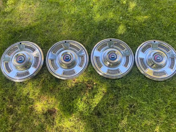 SET OF 41967 CHEVY CHEVELLE 14 INCH OEM WHEEL COVERS HUBCAPS ALL ORIGINAL NOT RESTORED ALL AMAZING GOOD CONDITION MUST SEE SEE ALL THE PICTURES CONTACT TOM AT 141-526-0117