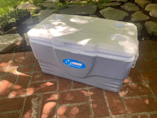 LIKE NEW COLEMAN XTREME 36 QUART ICE CHEST COOLER WITH HANDLES AND A DRAIN PLUG INSIDE DIMENSIONS 21 x 10 x 10 INCHES IN GOOD WORKING CONDITION MUST SEE SEE ALL THE PICTURES CONTACT TOM AT 141-526-0117