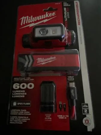 NEW UNOPENED MILWAUKEE RED LITHIUM USB HARD HAT HEADLIGHT RECHARGEABLE SPOT/FLOOD 600 LUMENS RED LITHIUM 3.0 MUST SEE SEE ALL THE PICTURES CONTACT TOM AT 141-526-0117