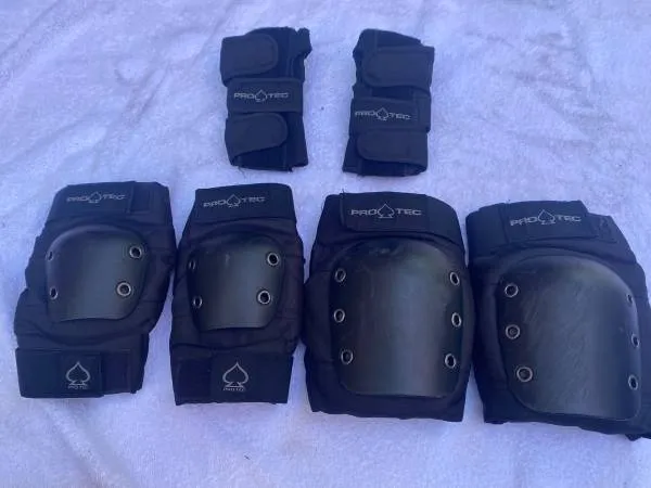 LIKE NEW PRO TECH STREET GEAR SIZE YOUTH MEDIUM WRIST, ELBOW, KNEE PROTECTORS GREAT FOR SCOOTERS, ROLLERBLADES, SKATEBOARDS COMFY PADDING VELCRO STRAPS FOR DIFFERENT SIZES IN GOOD WORKING CONDITION MUST SEE SEE ALL THE PICTURES CONTACT TOM AT 141-526-0117
