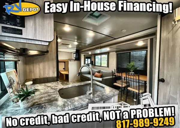 **Price listed is Down-payment** Dreaming of RV adventures but worried about financing? 💭 Specs: Length: 33.92 ft. | Dry W 8: 6,408 lbs. | Slides: 1 Price: $40,995 Down: $5,000 Monthly: $850 We have a high approval rating, no matter the credit we can help! 📞 817-989-9249 🏡 Visit Us Today: 4319 N. Main St., Cleburne, TX 🌐 https://try.rvdepottx.com/rvdeals 2021 FOREST RIVER SPIRIT 2963 BH Stock Number : 71097