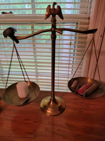 No email and no texting please call 770-516-4250 Scale Brass Justice of peace over 100 years old past to us from great great parents...reduce to $79 or obo call 770-516-4250