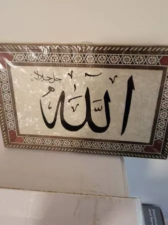 No email and no texting please call 770-516-4250 Old over 100 years Reduce for quick sale Allah God Wall Art Arabic Calligraphy Posters and Prints Canvas with small ivory hack all around…Painting Home Decor 11 x 7 inch, Call 770-516-4250