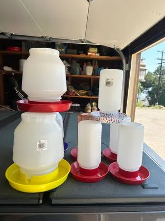 1 Gallon Chicken Waters For Grown Chickens Are Young Chicks $10.00 Dollars Each .Quart Size Waterers Are $8.00 Each Text Are Call Us 858-775-9928 Fund Raiser For Sons College
