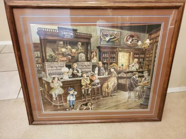 Turn Of The Century Drug Store art print by Lee Dubin.Measurements on picture. $250 call 505-721-7115