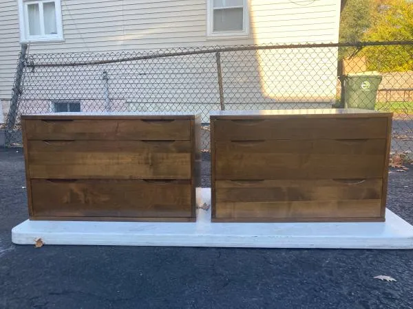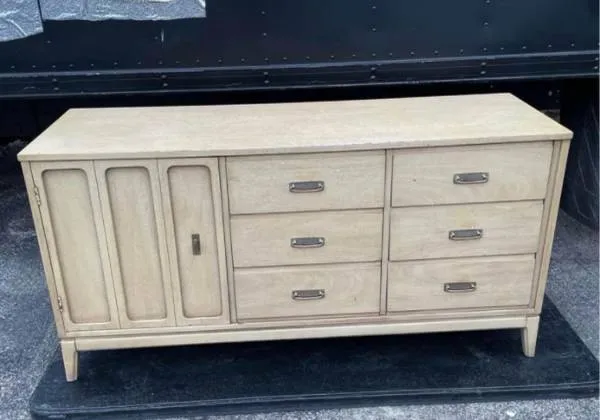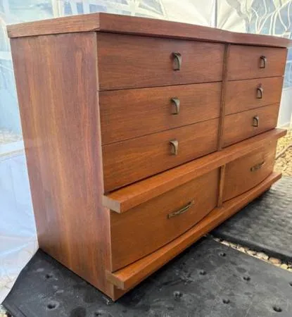 Available Mid Century 6 Drawer Chest Stanley. This piece shows minimal amount of imperfections from age and from being pre-own. Please see all pictures and ask any questions you may have about this piece. Delivery is available to all Chicago land and suburbs. Message at 331-205-0962 for any questions. . Depth 18 H 856 Width 38