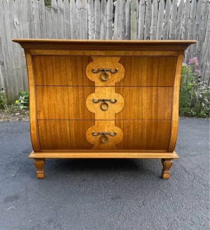 Available Pavane By Tomlinson 3 Drawer Chest. This piece is in excellent condition all drawers work well and this piece has some Burl wood on the front of the drawers and side front edges. Please see all pictures and ask any questions you may have about this piece. Delivery is available to all Chicago land and suburbs. Message at 331-205-0962 for any questions. Width 36 Depth 20 H 832