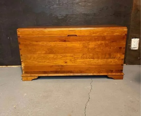 Available Solid Wood big Dovetailed Trunk/blencket chest/toychest. This piece is in excellent shape perhaps 1 of a kind. Please see all pictures and ask any questions you you may have about this piece. Delivery is available to all Chicago land and suburbs. Message at 331-205-0962 for any questions. Width 39 Depth 16 H 8201/2 Solid Wood thickness 3/4