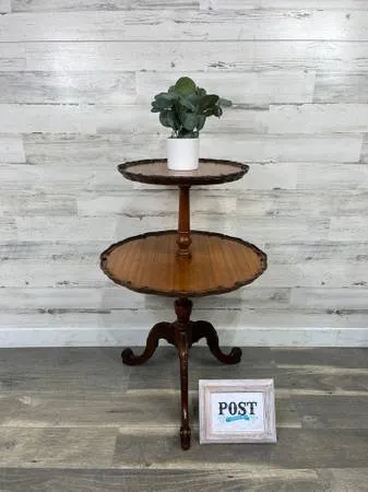Excellent condition antique pie crust end table. 2 tier levels. Very sturdy and made of solid wood. Width - 22 Depth - 22 H 8 - 33 Price- $95 located in Canby. No holds. Purchase directly through our website and view our inventory. Www.postfurnishings.com Text 541-490-6212 Living room, antique, vintage, end table, side table, Victorian, Duncan Phyfe, 20 th century furniture
