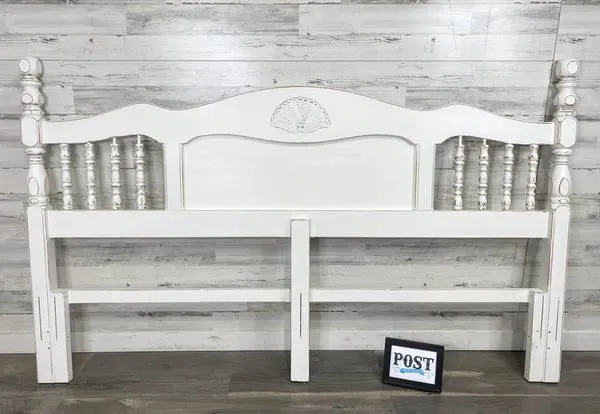 White farmhouse style headboard. Will fit king size or California king size bed frameshas 2 bracket settingsheavy and sturdy. Width - 80 Depth - 3 H 8 - 49 price-$150 no holds located in Canby purchase directly from our website postfurnishings dot com txt 541-490-6212 farmhouse king headboard, king bedframe, beach theme, farmhouse, headboard, pdx furniture, postfurnishings