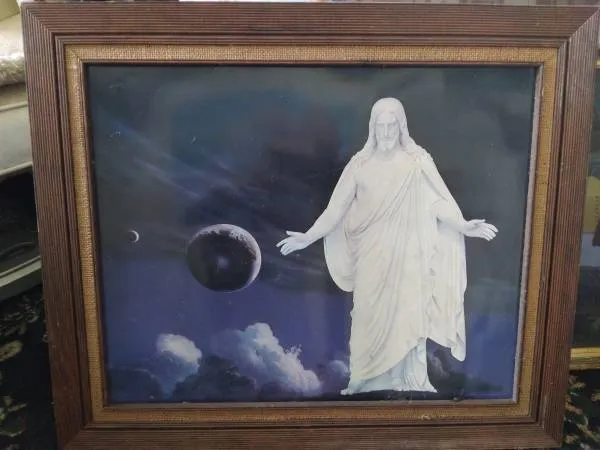 This vintage print shows a Statue of Jesus called Christus in Copenhagen. The frame is also vintage and they are both in excellent condition. Call David at 817-357-1773 if interested so we can set an appointment and please leave a voice message if I dont answer right away. No texting, I will Not reply. Correct cash only and you pick up