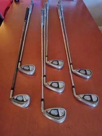 480-203-0123 ….Private Seller... No Tax... Save $$$$... Play it Today…... Call Text or Email JACK for More Info...Thank You….. 480-203-0123 ************************************************************************************************************************ THESE IRONS ARE FORGIVING AND LONG........... A CAVITY-BACK, PERIMETER-W 8 ED DESIGN ON THIS IRON SET CREATES THE LARGEST SWEET SPOT POSSIBLE. 8 EXCELLENT TAYLORMADE SPEEDBLADES 5-9 PWAWSW REGULAR FLEX GRAPHITE IRONS WITH LIKE NEW...