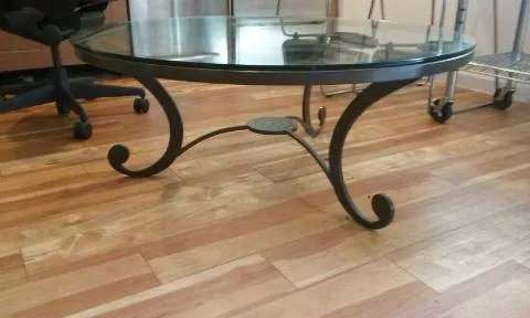 Round glass coffee table with no scratches. Call or text 404.229.1789. I dont get emails on my phone. Square table is 48 and $285