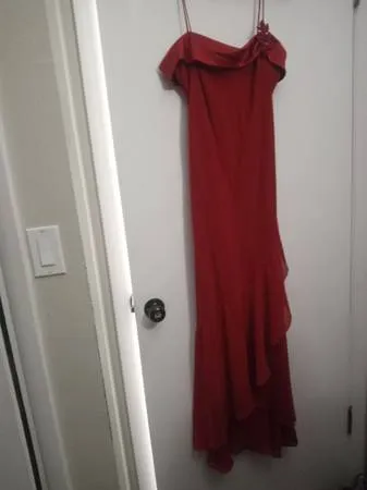 Red Nikki Formal dress, Sz 12, 50 inches long, Excellent Condition, $25 Cash only, Pick up zip code is 80907 Colorado springsIm close to garden of the gods Rd, Text Message for full address if wanting to pick it up, include in text what you are inquiring about, Im also available for Evening pick up too, 918-990-0789