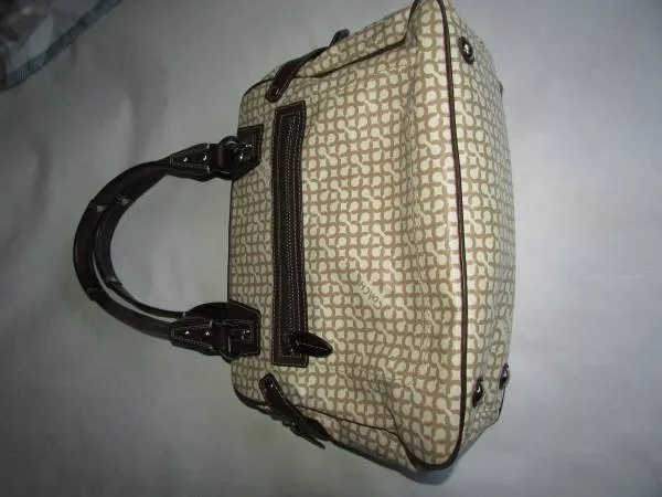 Coach Penelope Op Art brown leather, coated canvas satchel / bag 13147. 4 bottom studs. Pick satin interior. Zip pocket. 2 slip pockets. Front snap pocket with brown leather hang tag. 14 x 10 x 5. 8 handle from top of bag. Interior shows a few small stains. Bag exterior is excellent. Please see pictures. Im in West Irondequoit by the lake. Call or text 585-431-2478 or use Craigslist E-Mail.