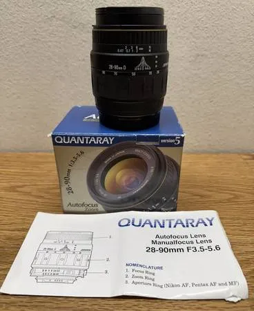 Quantaray Autofocus Zoom 28-90 mm lens for Minolta AF-D 25-166-4942, TESTED Zoom lens for used for a trip to Europe and has been back in the original box ever since. Its a terrific lens and we are not using it. Asking $20.00. Please text/call Brad 470-707-772-5470, 707, 7725