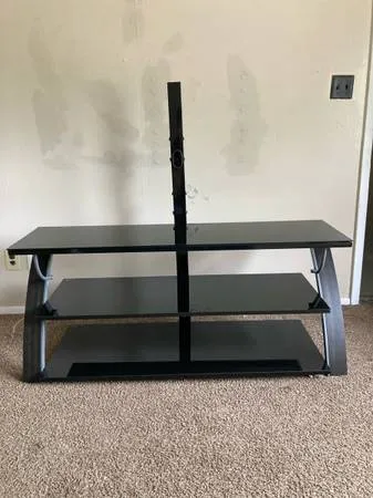 Tempered Glass Modern TV Stand. 60 by 30 base. $50 O.B.O. Pickup in Chillicothe. Text 309-360-9545