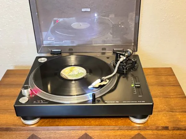 Pi 1 er PLX-500 Direct Drive Turntable The turntable is in pristine operational condition There is a crack close to the hinge but is totally functional. The lid has some scuffs here and there Loaded with ortofon concorde stylus 512-293-3490