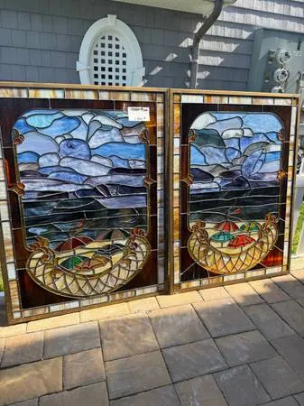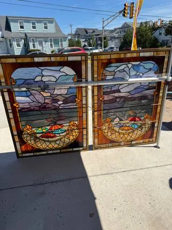2 stained glass windows 4 x 3 $1,500.- each Set of 4 Vintage signed 1980 artist Reduced from $2000 each $7,500.00 for the set of 4 Magnificent Beach scene from a casino REDUCED TO. $1,500.-ea. $5,500.- For the Set of 4 text 215-317-5300 just reduced for a quick sale 215-317-5300. In Ocean City NJ.other windows, size and price by request delivery option.CALLS TEXT ONLY.then Voice Verify NO EMAIL RESPONDS.