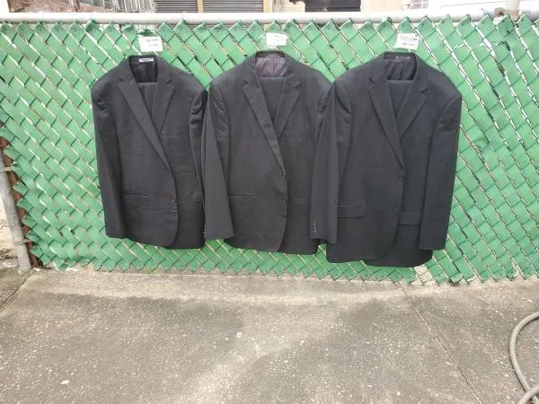 3 expensive used wool suits. Size 46 long jacket and size 40 pants. 2 black and 1 gray. These were selling for $800-$1000 each In stores. 3 for $90 great price!! Cash. Must pickup sheepshead bay brooklyn . No emails text only 347-554-5594