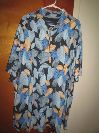 Tommy Bahama Islandz 1 mens polo / golf shirt in a mens 3 XLXXXL. Very good shape. Nice print. Cotton / poly blend. I have several more in this size and would be willing to make a deal on multiple shirtsalso a jacket. Im in West Irondequoit by the lake. Call or text 585-431-2478 or use Craigslist mail.
