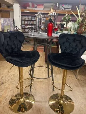 For Sale: Wonderful pair 2 of vintage black velvet swivel bar stools. The price is only $75.00 each. $150.00 for both. This fabulous pair of bar stools can be seen at Yesteryears Marketplace Antique Store located at 433 Georgia Street, Vallejo, CA 94590. phone 707-557-4671. Please contact Bob at 707-557-4671 for more information and directions. Note: Our new hours are Noon to 5:00 PM, Tuesday through Saturday. Sunday hours are Noon to 4:00 pm. We are closed on Monday. Than...