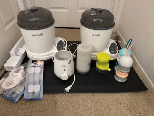 2 x Automatic Baby Bottle Sterilizer and Dryer 1 x Avent Bottle Warmer 1 x Tommee Tippee Travel Baby Bottle Warmer 2 x Bebba Glass Food Jars 2 x Bebba Baby Powered Dispensers Set of New home safety gear for cupboard and doors. Cash only, Buyer collects 858-333-7059