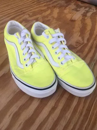 These Vans shoes are very clean and very yellow. In great condition. phone or text only please. 316-295-9967 Cash only, no trades. Will meet in public place for purchase. Thanks for looking. Vans shoes, skateboard shoes, ladies Vans shoes, men’s Vans shoes, Van Doren Rubber Company .