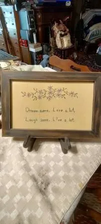 Lisa Johnson hand stitched embroidery and wooden frame in excellent condition $35 call Neil 978-372-7298 Haverhill Mass