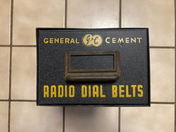 Vintage General Cement Radio Dial Belts Cabinet Drawer Advertising TV Tubes •About 145/8 “ long x 61/8 wide x 41/4 tall •Shows normal wear from age, but is in good overall condition. Asking $25.00 interested call 847-644-6199