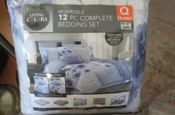 Includes comforter/bedspread, 2 pillow cases, base skirt, and accent pillow. Photo is of pillow...The comforter is mostly of same design, with areas of no design, just open off-white. Barely used - LIKE NEW! - $40 - CASH - FIRM - CALL 231-228-6218 * I may meet halfway to deliver between Maple City and Traverse City.
