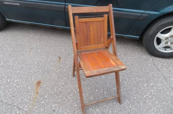 A very unique folding chair. Measures 33 tall x 16 wide x 20 deep. - $40 - CASH - FIRM - NO ZELLE, PAYPAL, VENMO, OR CASHAPP CALL 231-228-6218 * I may meet halfway to deliver between Maple City and Traverse City.