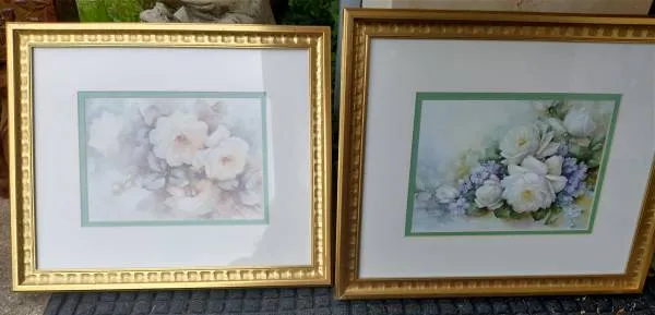 Floral prints with roses and gold gilted frames measuring approx 18 x 15. Artist Sony Ames. Title light florals. Calls only no emails and please do check out our other available items for easy porch pickup and multi-purchase discounts. Thank you! Contact at 216-256-1230