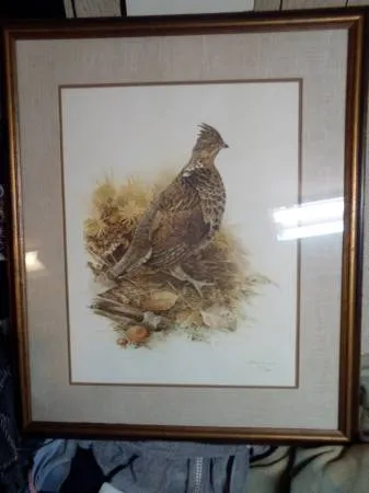 32 x 37 Ruffed Grouse Bird Original Limited Edition Lithograph Numbered .30/.200 Linen matted, Gold gilded Quality Walnut Frame. Hand signed by James Fenwick Landsdowne, a noted Listed Artist. Just beautiful in Excellent Condition. Call or Text 216-256-1230 Take a look at all the other items we are parting with by going to the on this page. Thank you!