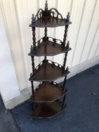 Liquidating 2 storage facilities of Antiques, Collectibles, Art and more Antique Mahogany What Not Corner Shelf 60 inches tall] 5 foot tall Call Marty at 615-948-6177